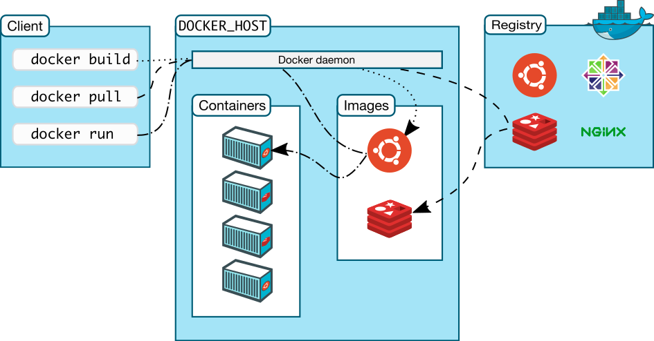 - Registry : Nơi lưu trữ các image (ảnh) Docker. Docker hub là một ví dụ và là kho duy nhất được cài mặc định trên Docker lúc mới cài. Chúng ta có thể hoàn toàn tự tạo một kho của riêng mình.